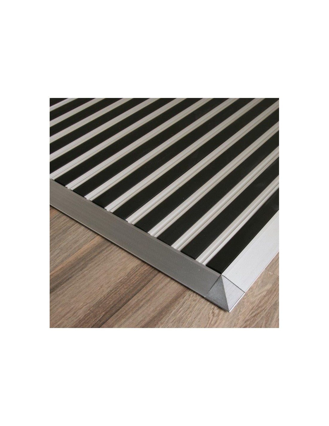Tapis d'entrée en aluminium. 9 mm de hauteur. 33 mm de largeur. Finition plastique.