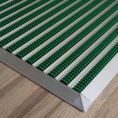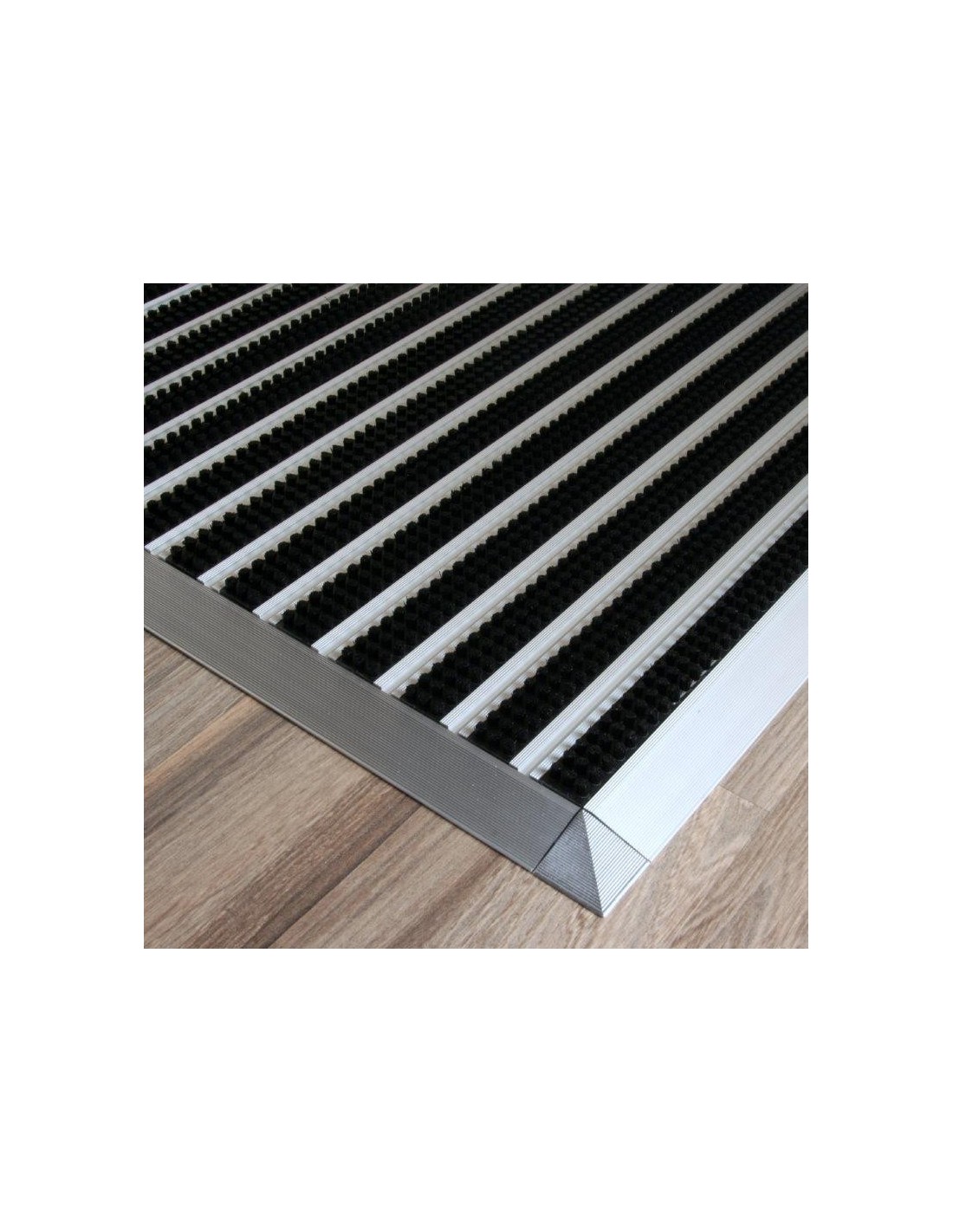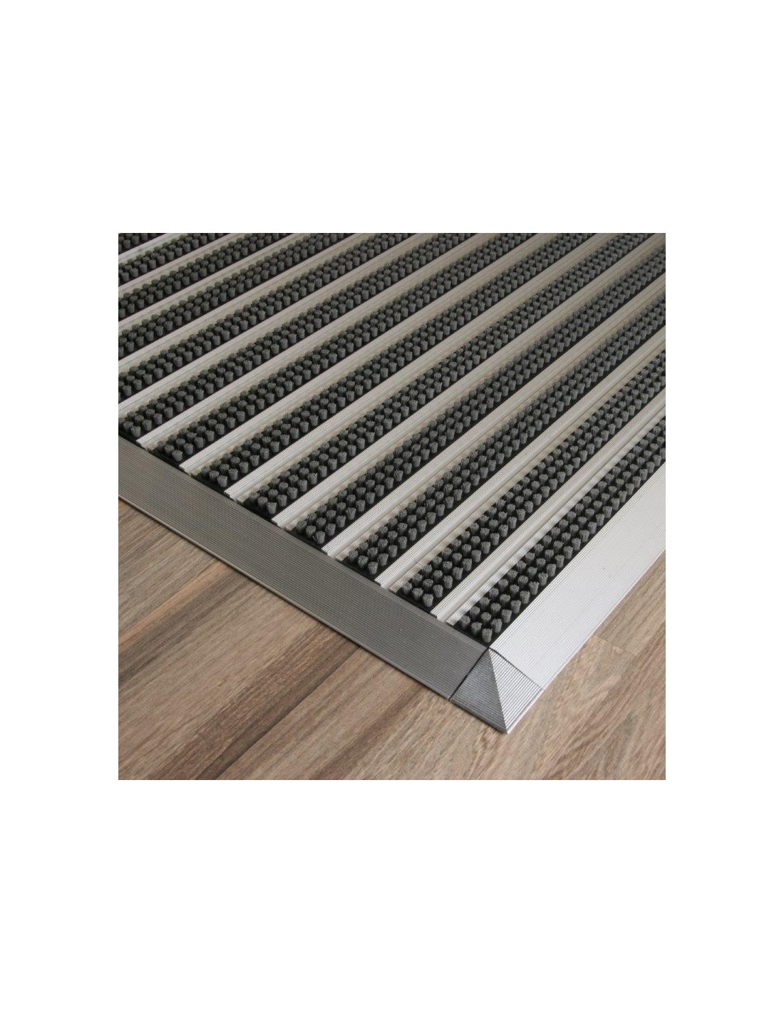 Tapis d'entrée en aluminium. 9 mm de hauteur. 33 mm de largeur. Finition brosses.