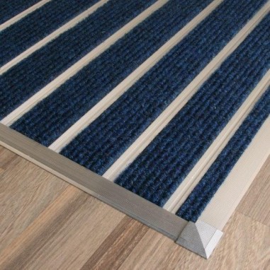 Tapis d'entrée en aluminium. 17 mm de hauteur. 69 mm de largeur. Finition textile.
