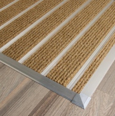 Tapis d'entrée en aluminium. 17 mm de hauteur. 69 mm de largeur. Finition textile.