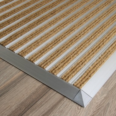 Aluminium entrance mat. 9 mm high. 33 mm wide. Textile finish. Ramps.