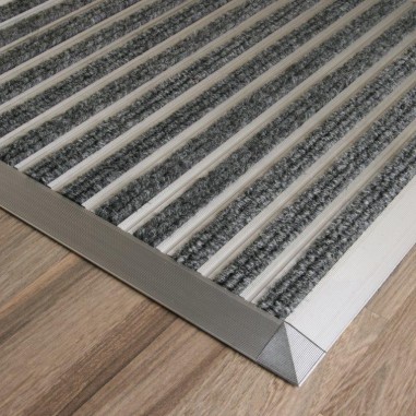 Aluminium entrance mat. 9 mm high. 33 mm wide. Textile finish.