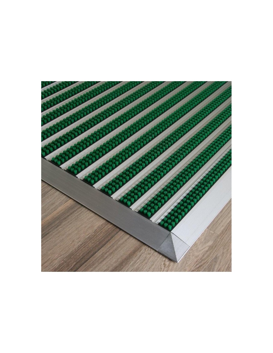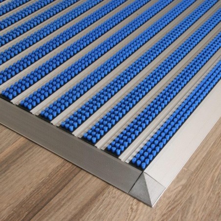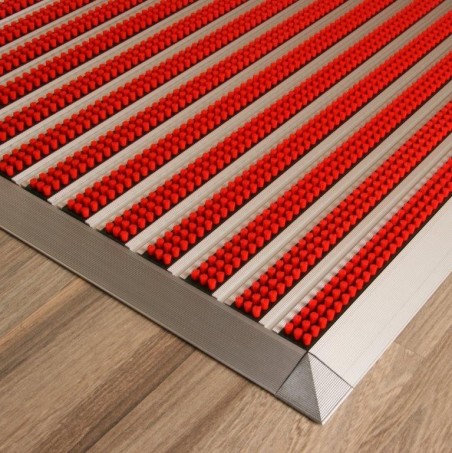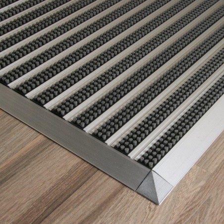 Aluminium entrance mat. 9 mm high. 33 mm wide. Brushes finish. Ramps.